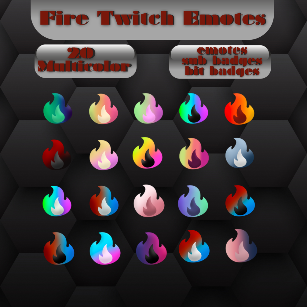 Fire Emotes, Sub Badges, Twitch Emotes, Discord Emotes, Bit Badges, Twitch Sub Badges, Twitch, Discord, Bright Emotes, Emote Pack
